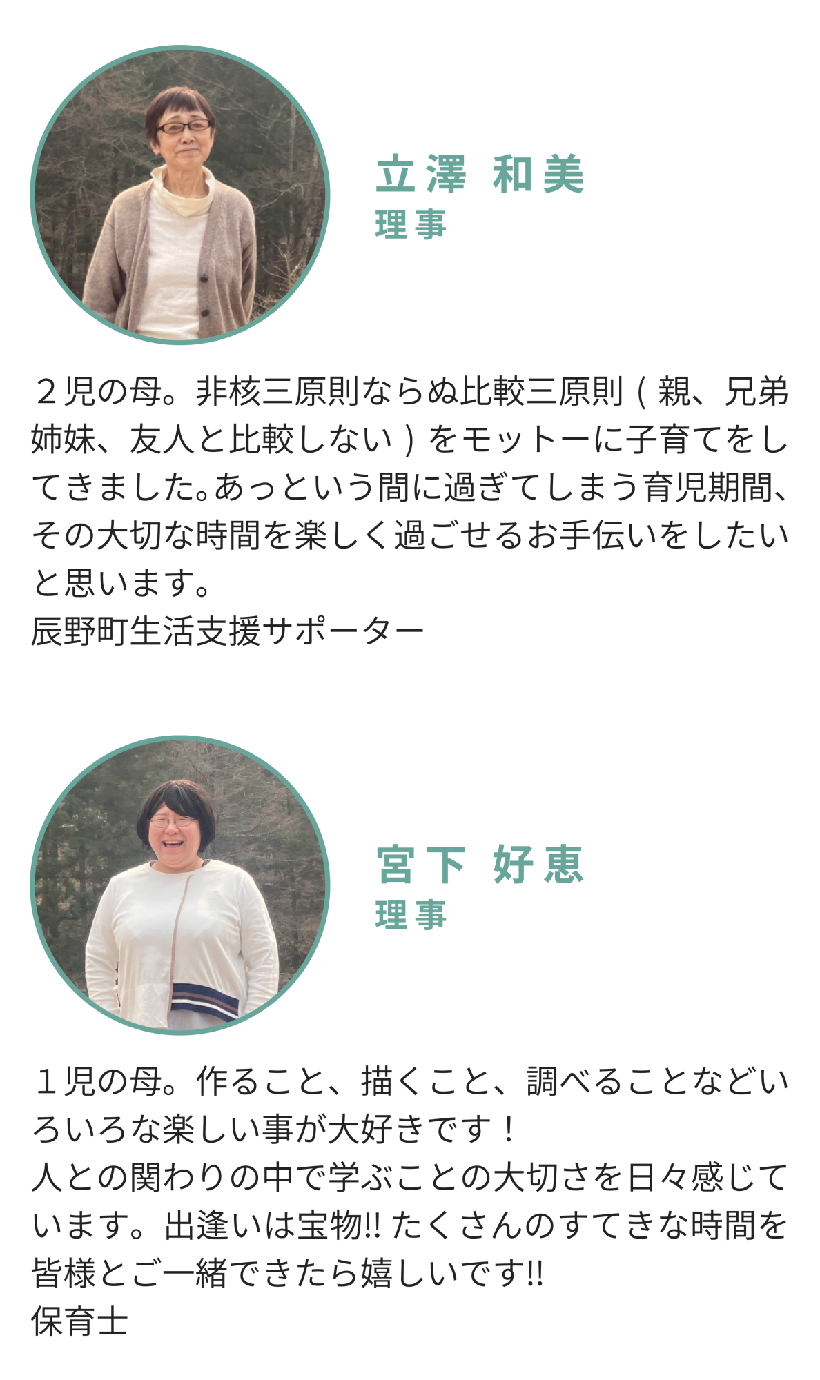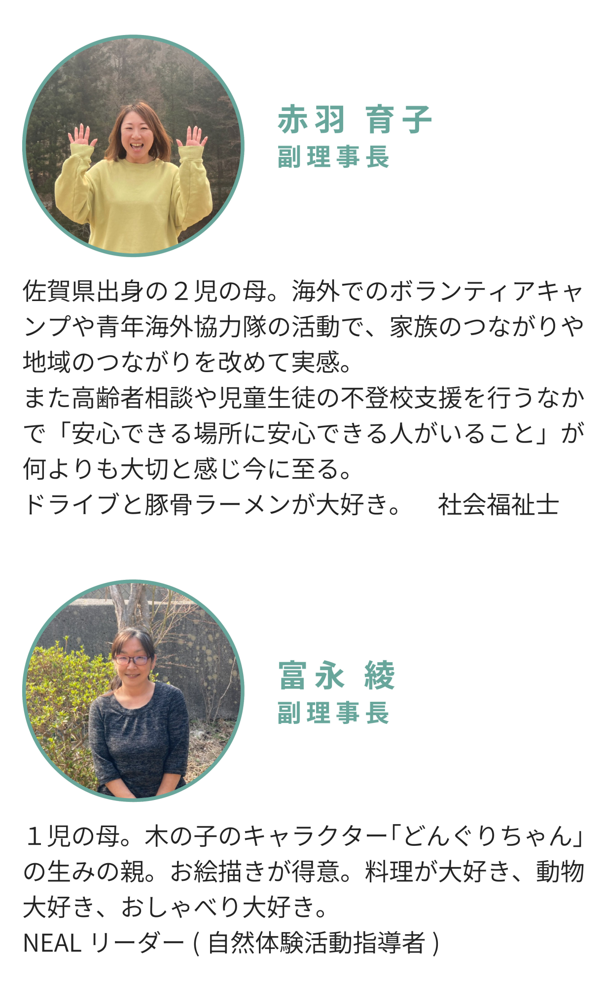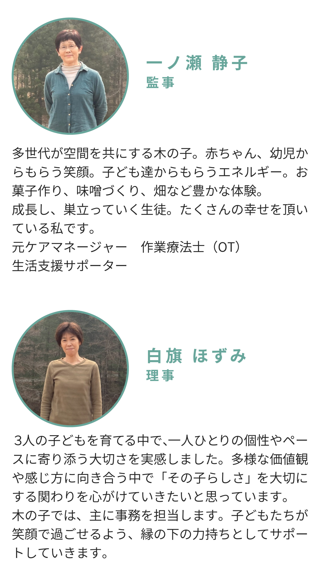 人間も木と同じように「根っこ」が大切です。人間の「根っこ」は、自分の在り方を認識できているかどうかだと思います。生きていれば、色々なことがあります。良い時もあれば、悪い時もあるでしょう。でも根っこがしっかりしていれば、何があっても倒れることがなく、自分の人生を切り開くことが出来ます。里山スクール木の子は、人間の「根っこ」を育てることを目標にまずは安心して自分らしくいられる場を作り、様々な活動を提供しています。ここで学ぶ人々が、様々な人とのつながり、自然とのかかわりを通じて、自分の在り方、そして生き方を見出していってほしいと思い、活動を続けています。